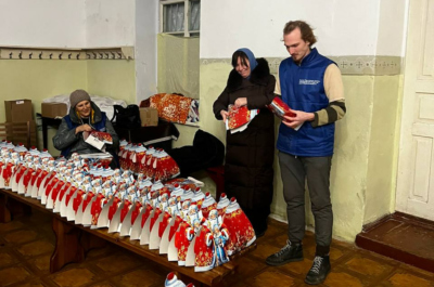 В центр при молодежном отделе епархии были переданы продукты питания от Патриаршей гуманитарной миссии — их привез руководитель Специального гуманитарного центра Крымской митрополии протоиерей Димитрий Кротков. Продукты будут выдаваться пострадавшим.